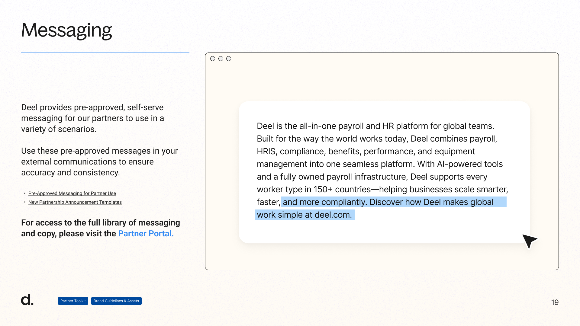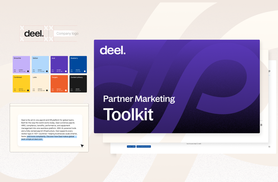 We helped the Partnerships Team at Deel create a clear and comprehensive playbook for their many partners to access brand-approved assets.